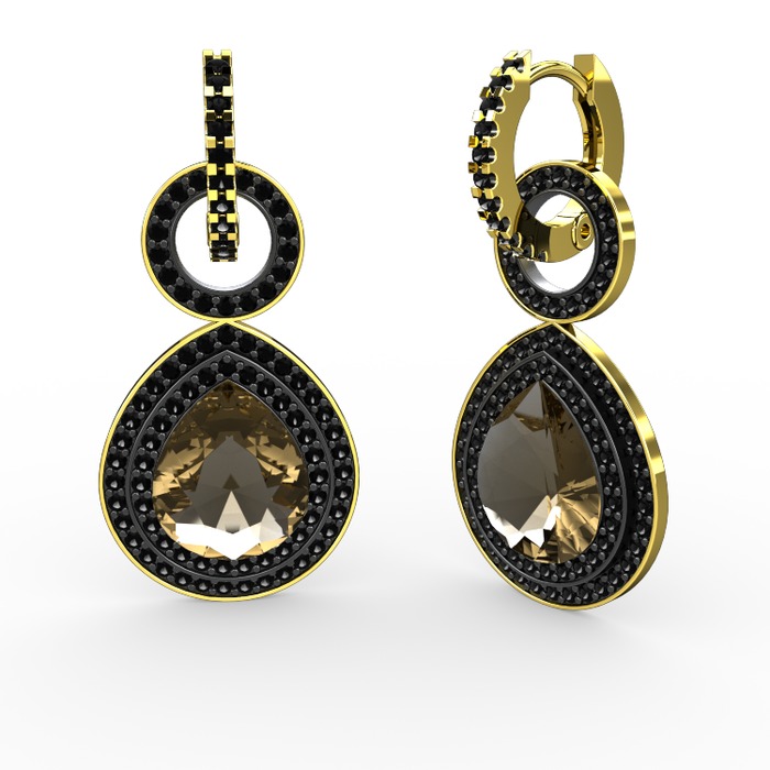 Dumanlı kuvars ve siyah zirkon 14 ayar altın küpe