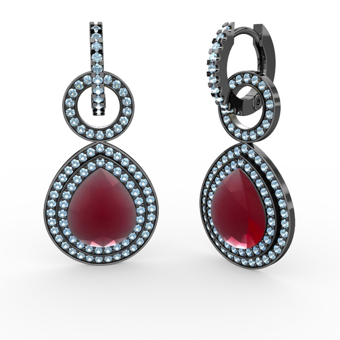 Kök yakut ve akuamarin 925 ayar siyah rodyum kaplama gümüş küpe