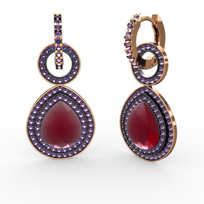 Kök yakut ve ametist 925 ayar rose altın kaplama gümüş küpe