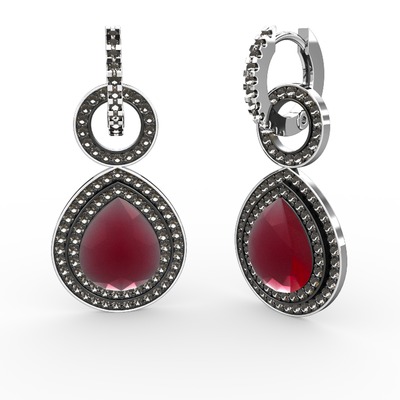 Kök yakut ve dumanlı kuvars 14 ayar beyaz altın küpe