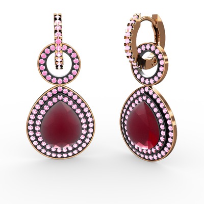 Kök yakut ve pembe kuvars 925 ayar rose altın kaplama gümüş küpe