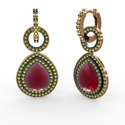 Kök yakut ve peridot 14 ayar rose altın küpe