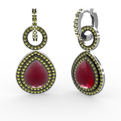 Kök yakut ve peridot 8 ayar beyaz altın küpe