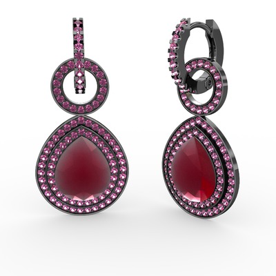 Kök yakut ve rodolit garnet 925 ayar siyah rodyum kaplama gümüş küpe