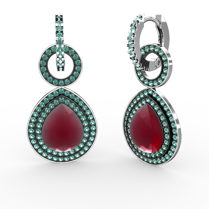 Kök yakut ve yeşil kuvars 8 ayar beyaz altın küpe
