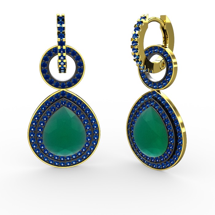 Kök zümrüt ve lab safir 18 ayar altın küpe