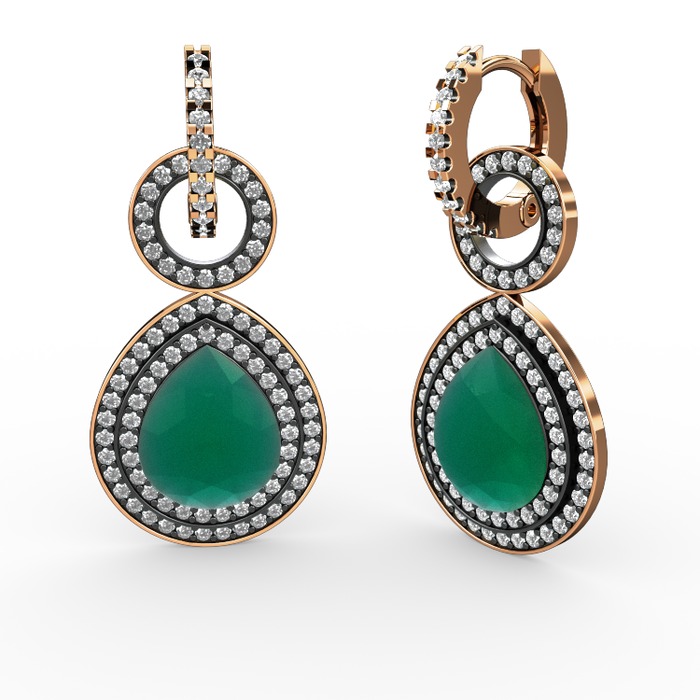 Kök zümrüt ve pırlanta 8 ayar rose altın küpe (1.98 karat)
