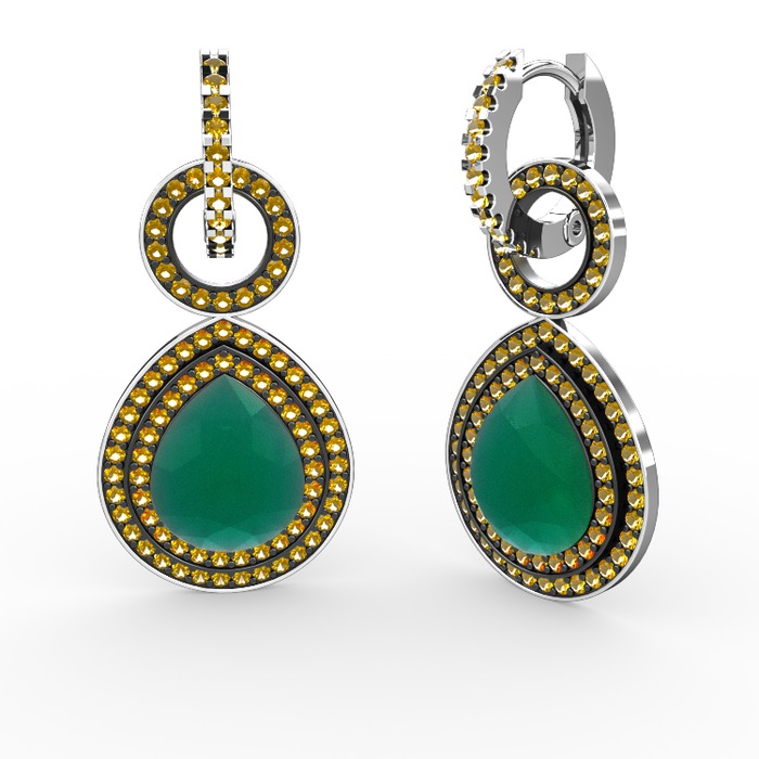 Kök zümrüt ve sitrin 8 ayar beyaz altın küpe