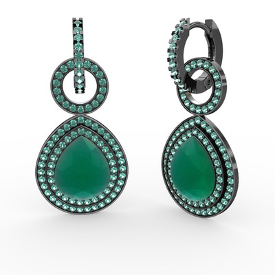 Kök zümrüt ve yeşil kuvars 925 ayar siyah rodyum kaplama gümüş küpe
