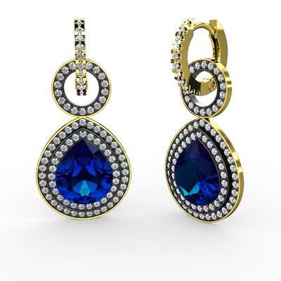 Lab safir ve beyaz zirkon 8 ayar altın küpe