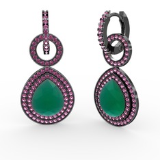 Lab safir ve pembe kuvars 18 ayar beyaz altın küpe