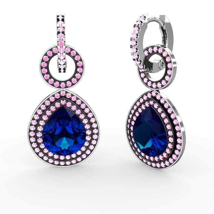 Lab safir ve pembe kuvars 8 ayar beyaz altın küpe