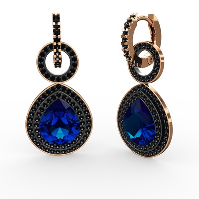 Lab safir ve siyah zirkon 8 ayar rose altın küpe