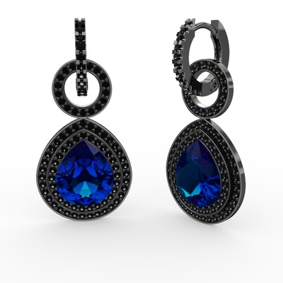 Lab safir ve siyah zirkon 925 ayar siyah rodyum kaplama gümüş küpe