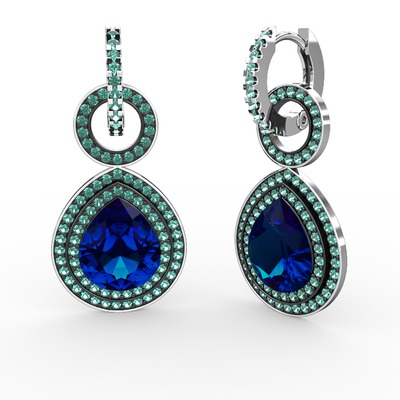 Lab safir ve yeşil kuvars 925 ayar gümüş küpe