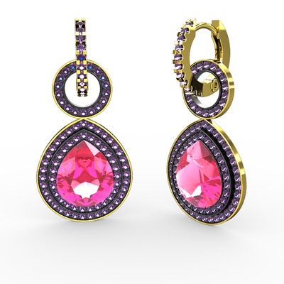 Pembe kuvars ve ametist 8 ayar altın küpe