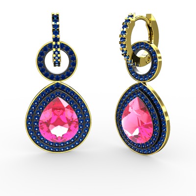 Pembe kuvars ve lab safir 18 ayar altın küpe