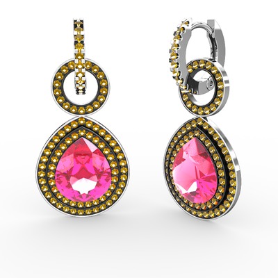 Pembe kuvars ve sitrin 14 ayar beyaz altın küpe