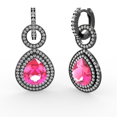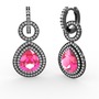 Pembe kuvars ve swarovski 925 ayar siyah rodyum kaplama gümüş küpe