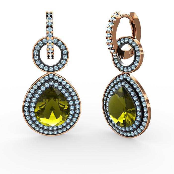Peridot ve akuamarin 925 ayar rose altın kaplama gümüş küpe