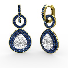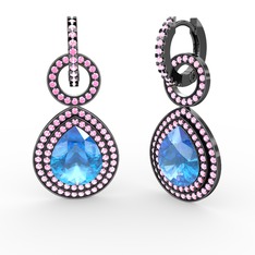 Peridot ve lab safir 925 ayar siyah rodyum kaplama gümüş küpe