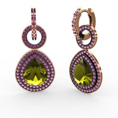 Peridot ve rodolit garnet 14 ayar rose altın küpe