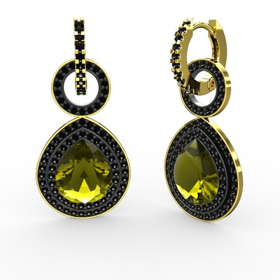 Peridot ve siyah zirkon 14 ayar altın küpe