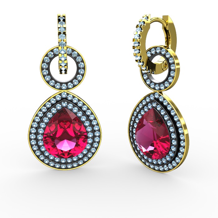 Rodolit garnet ve akuamarin 925 ayar altın kaplama gümüş küpe