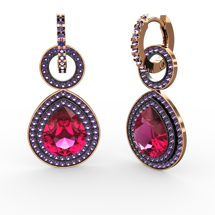 Rodolit garnet ve ametist 925 ayar rose altın kaplama gümüş küpe