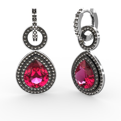 Rodolit garnet ve dumanlı kuvars 18 ayar beyaz altın küpe