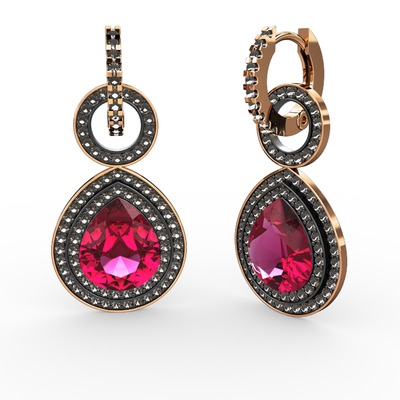 Rodolit garnet ve dumanlı kuvars 925 ayar rose altın kaplama gümüş küpe