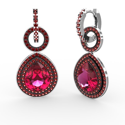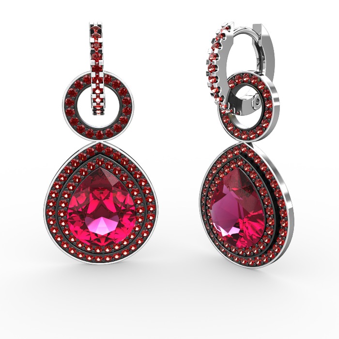 Rodolit garnet ve garnet 14 ayar beyaz altın küpe