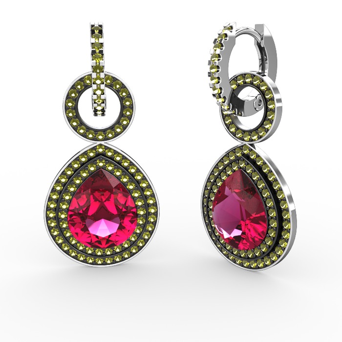 Rodolit garnet ve peridot 18 ayar beyaz altın küpe