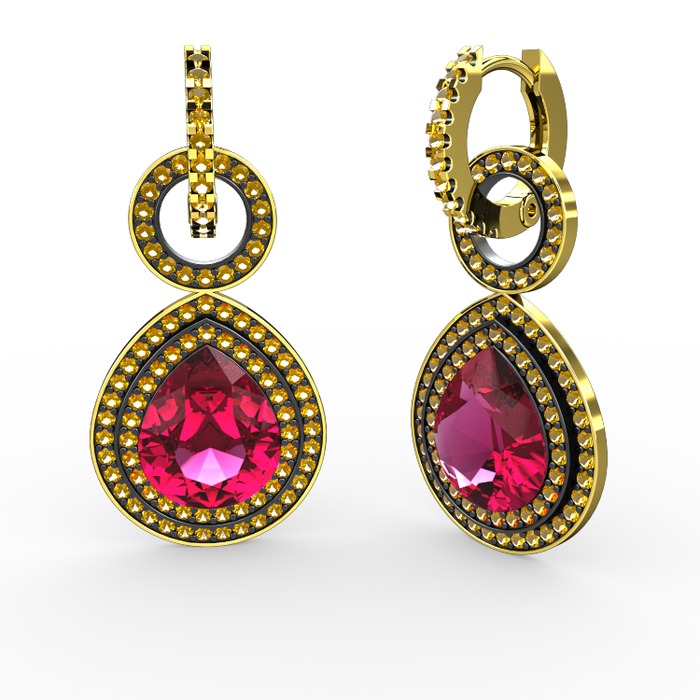 Rodolit garnet ve sitrin 925 ayar altın kaplama gümüş küpe