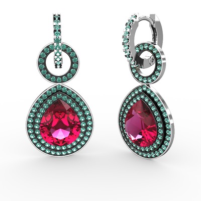 Rodolit garnet ve yeşil kuvars 14 ayar beyaz altın küpe