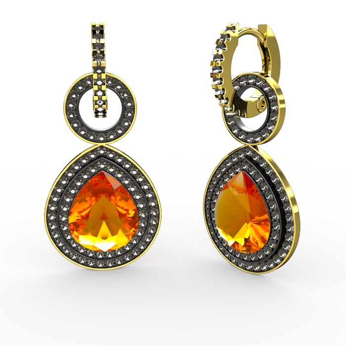 Sitrin ve dumanlı kuvars 18 ayar altın küpe