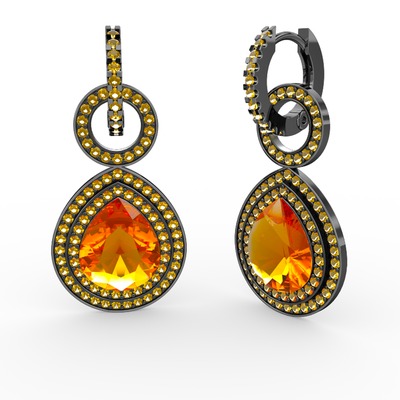 Sitrin 925 ayar siyah rodyum kaplama gümüş küpe