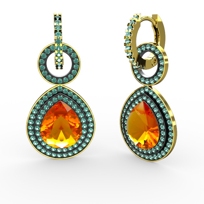 Sitrin ve yeşil kuvars 18 ayar altın küpe
