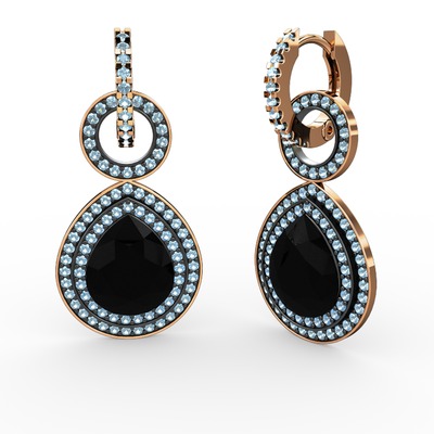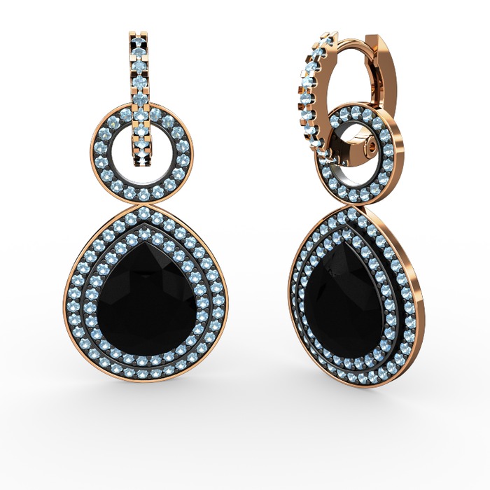 Siyah zirkon ve akuamarin 18 ayar rose altın küpe