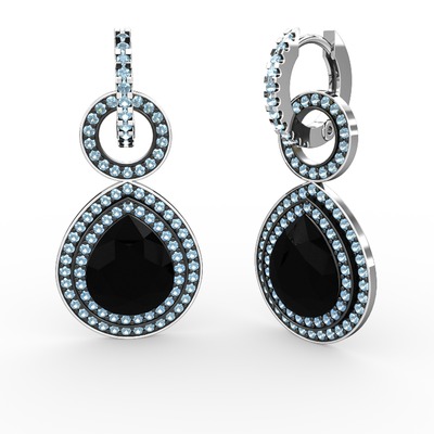 Siyah zirkon ve akuamarin 8 ayar beyaz altın küpe