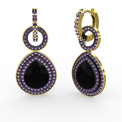 Siyah zirkon ve ametist 925 ayar altın kaplama gümüş küpe