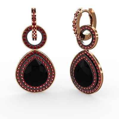 Siyah zirkon ve garnet 8 ayar rose altın küpe