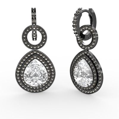 Swarovski ve dumanlı kuvars 925 ayar siyah rodyum kaplama gümüş küpe