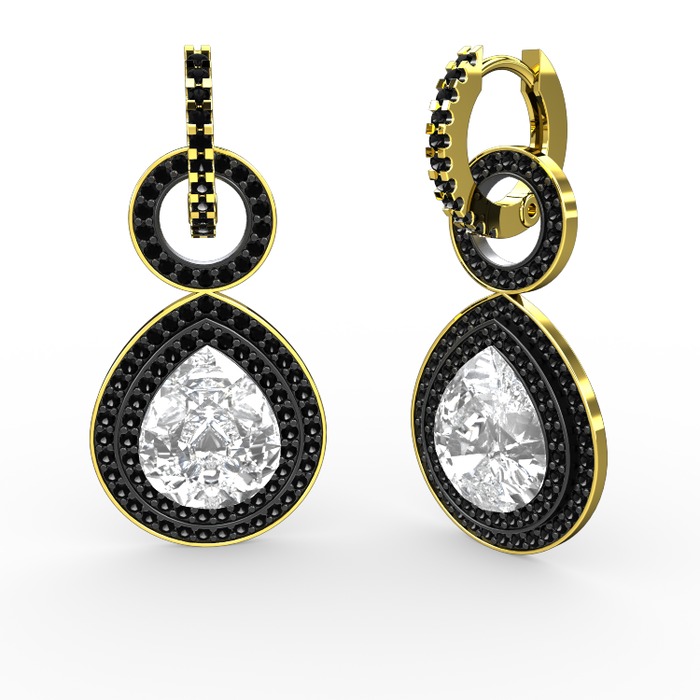 Swarovski ve siyah zirkon 8 ayar altın küpe