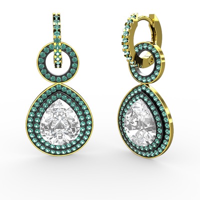 Swarovski ve yeşil kuvars 925 ayar altın kaplama gümüş küpe