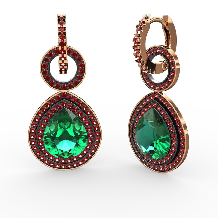 Yeşil kuvars ve garnet 8 ayar rose altın küpe