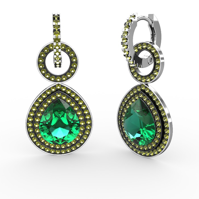 Yeşil kuvars ve peridot 8 ayar beyaz altın küpe