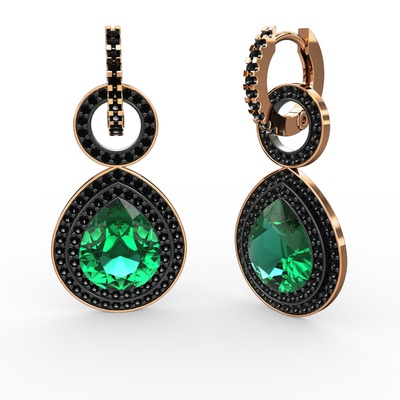 Yeşil kuvars ve siyah zirkon 14 ayar rose altın küpe