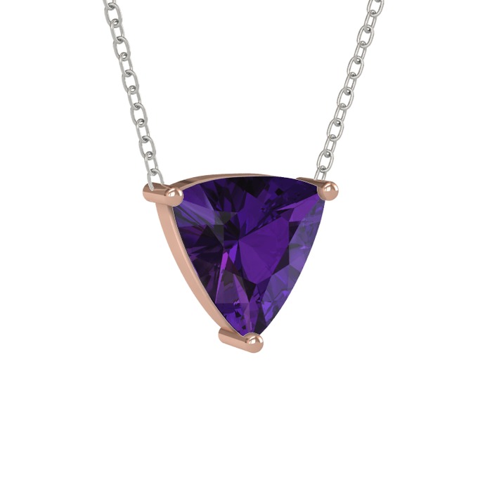 Ametist 18 ayar rose altın kolye (40 cm gümüş rolo zincir)