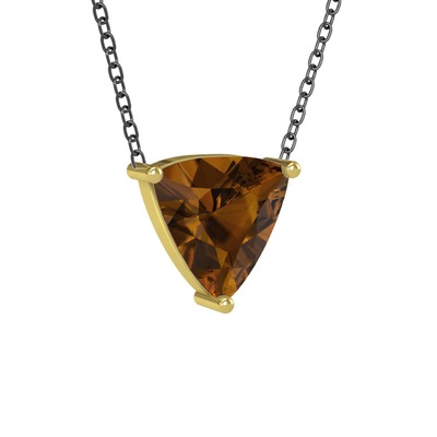 Dumanlı kuvars 14 ayar altın kolye (40 cm gümüş rolo zincir)